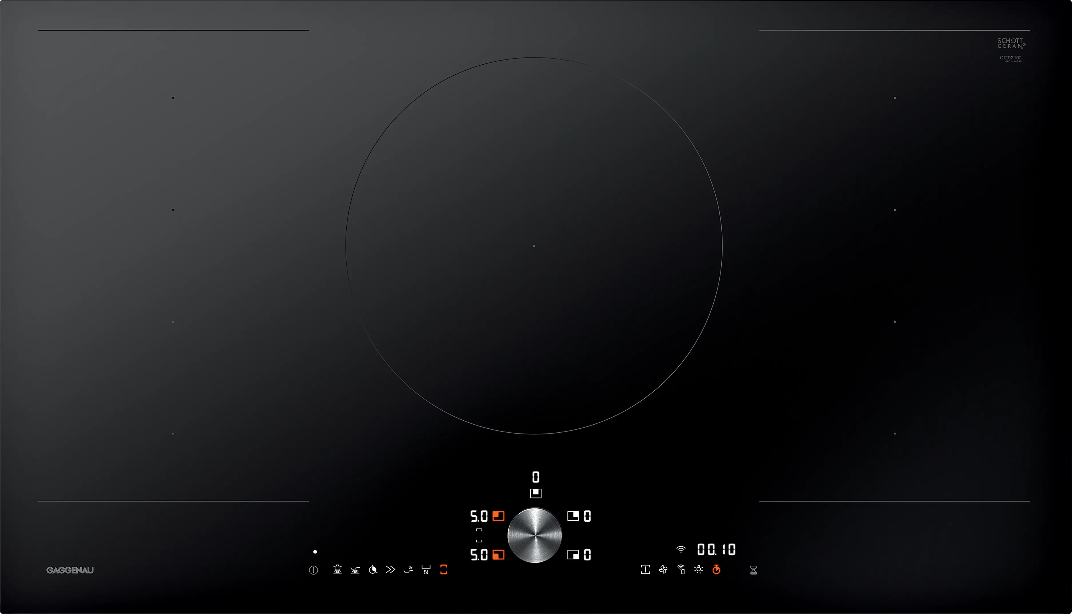1 induction cooking zone ø 21 cm (2200 W, with booster 3700 W), automatically switches to ø 26 cm (2600 W, with booster 3700 W) and to ø 32 cm (3300 W, with booster 3700 W).