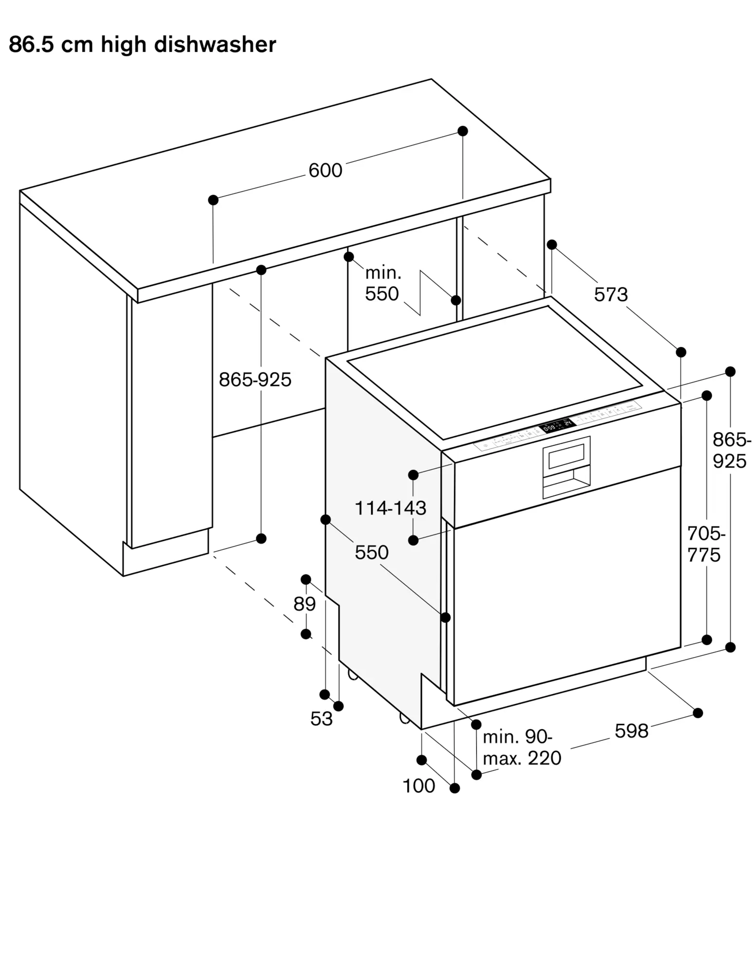 Appliance plinth recess 100 mm (see drawing).