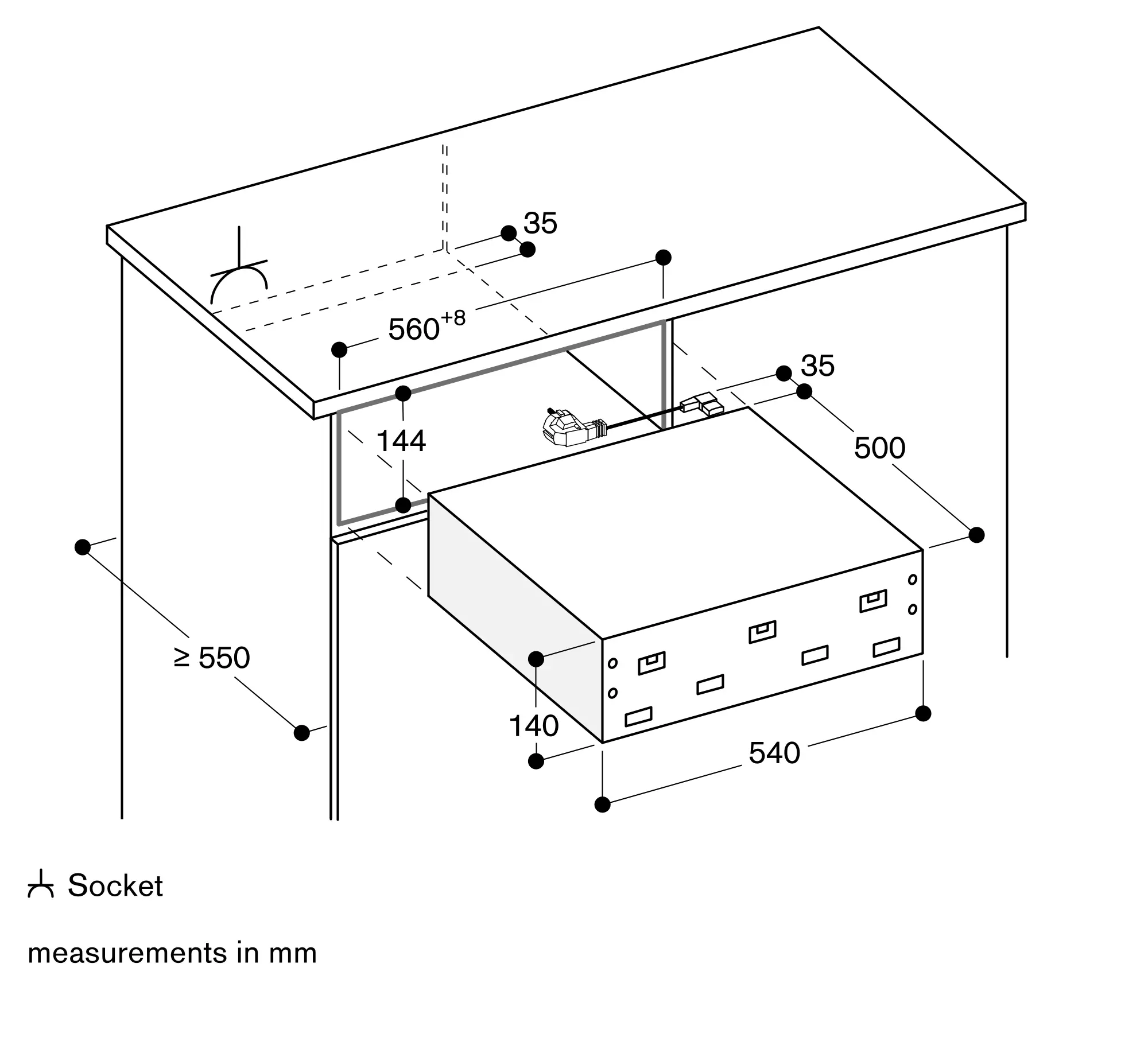 Installation of BS/BM/CM directly above DV in 59 cm niche without intermediate floor.