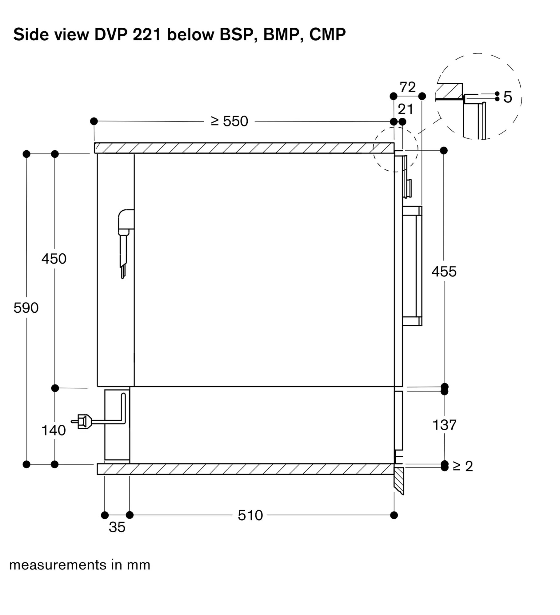 Installation of BS/BM/CM directly above DV in 59 cm niche without intermediate floor.