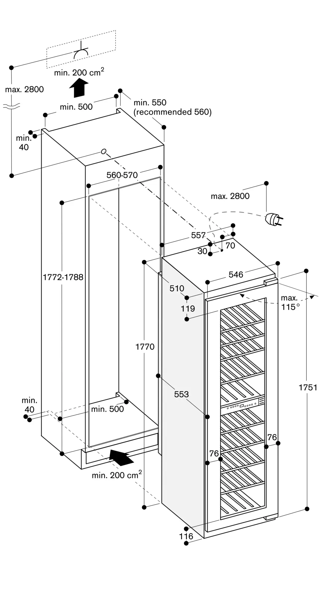 wine climate cabinet 177.2 x 56 cm
