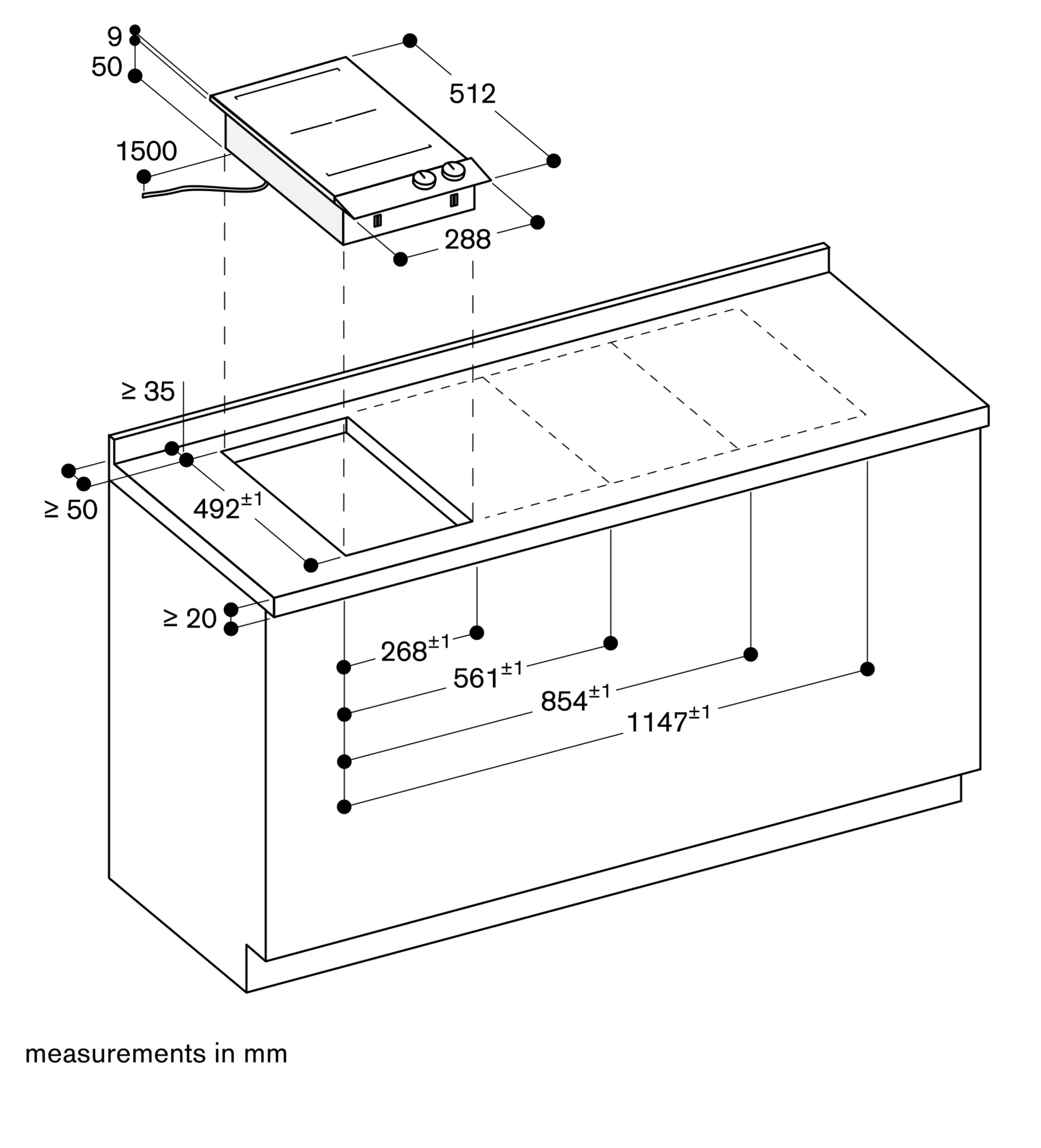 Appliance can be snapped into the worktop from above.