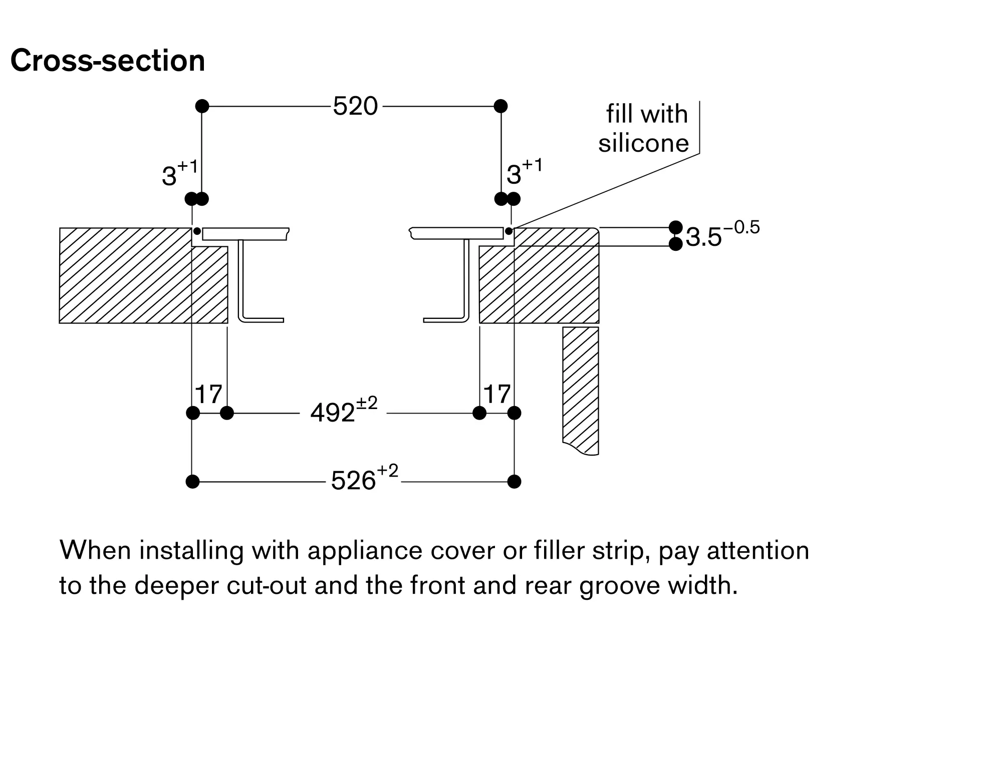 The groove must be continuous and even, so that uniform placing of the appliance on the gasket is ensured. Do not use discontinuous lining.