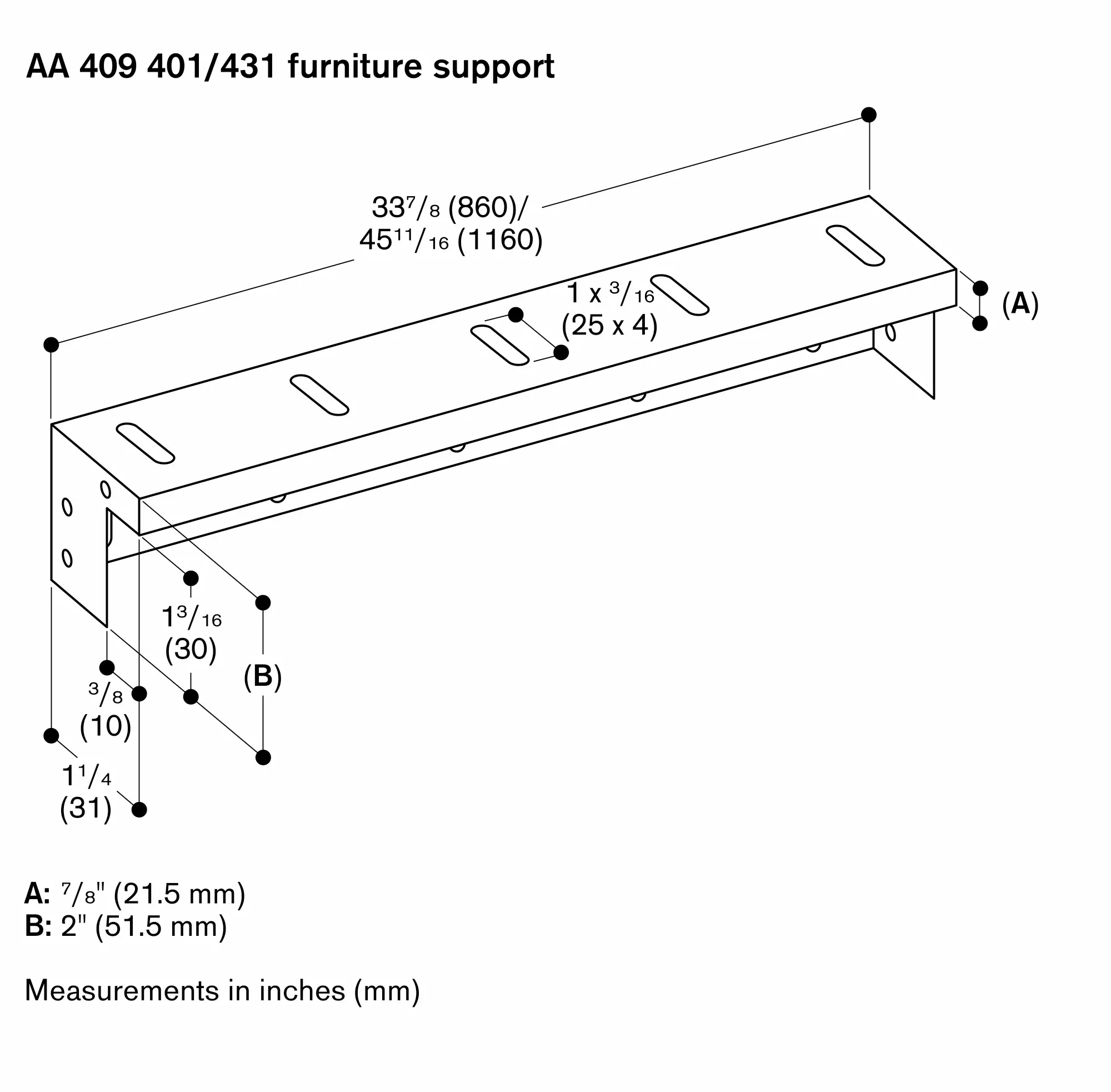 Recommended as bearer for the worktop, instead of a cabinet frame.