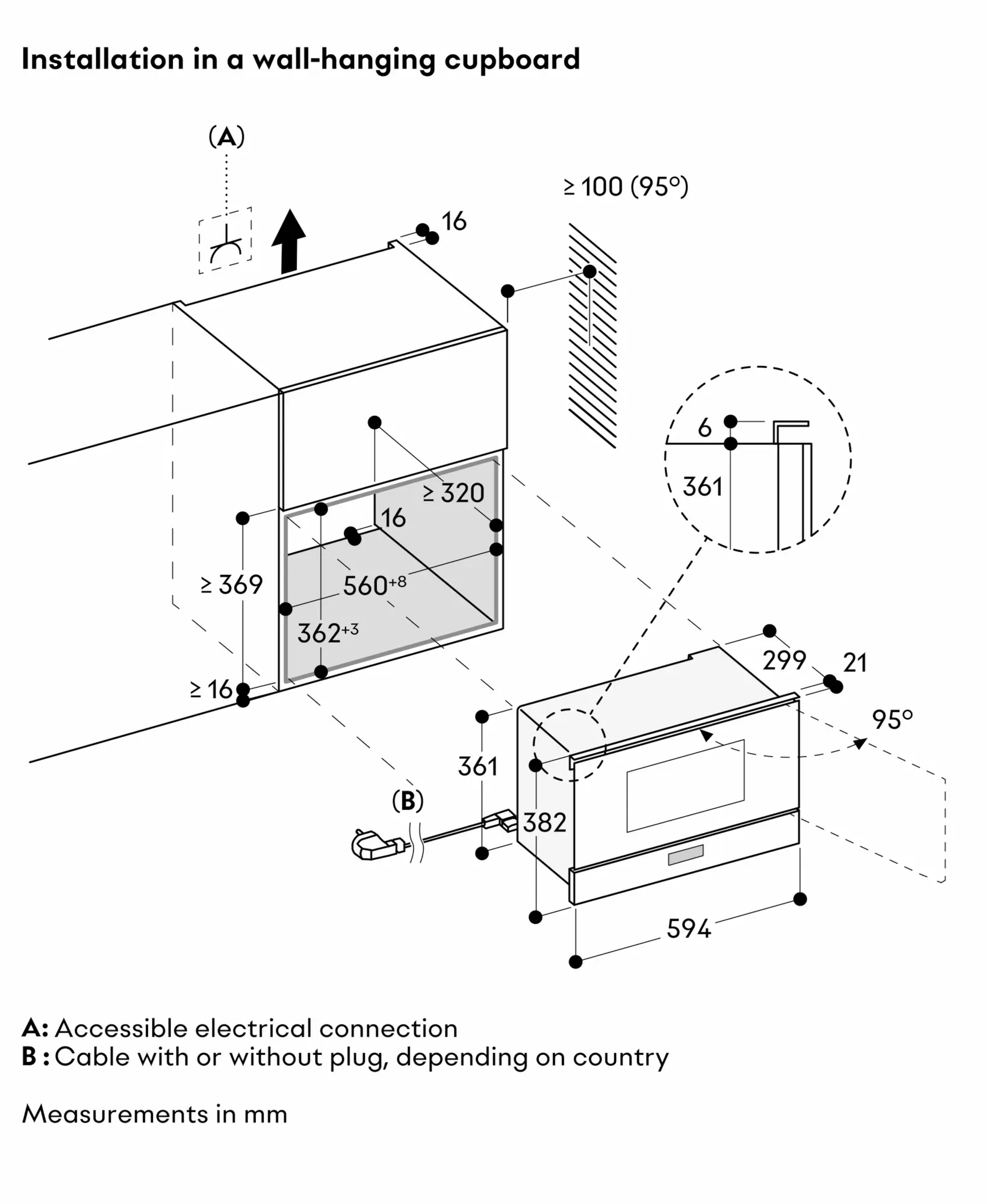 Minimum installation height 85 cm (top edge of niche bottom).